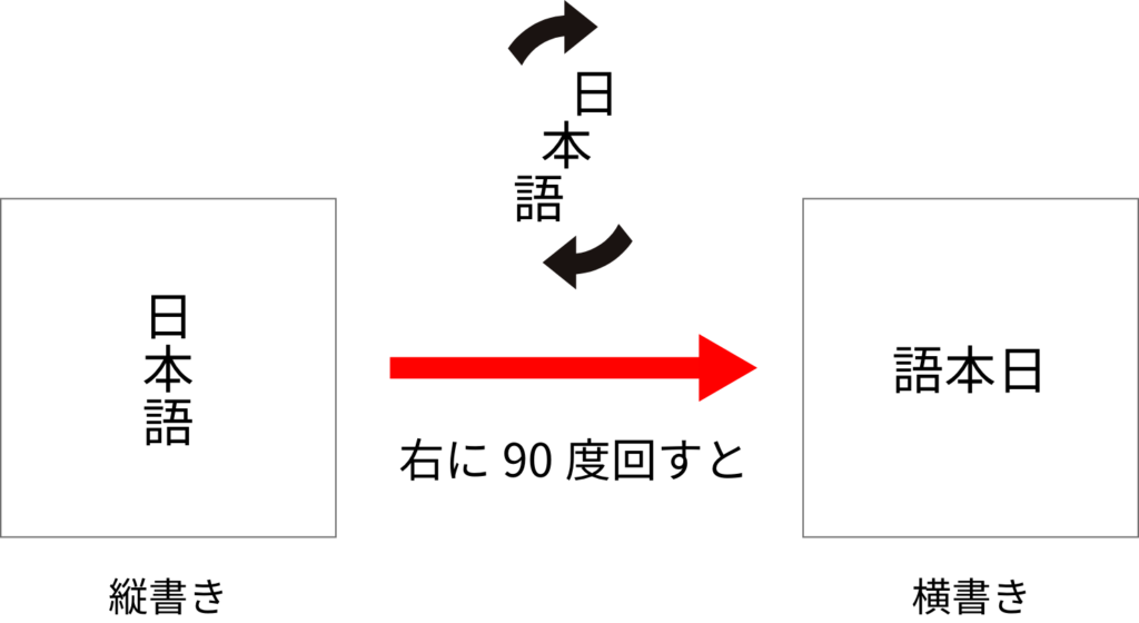 明治時代以降に西洋文化の影響で横書きが必要になった時に日本人は『縦書きを横に倒せばいい』と考え右に90度に回しました。